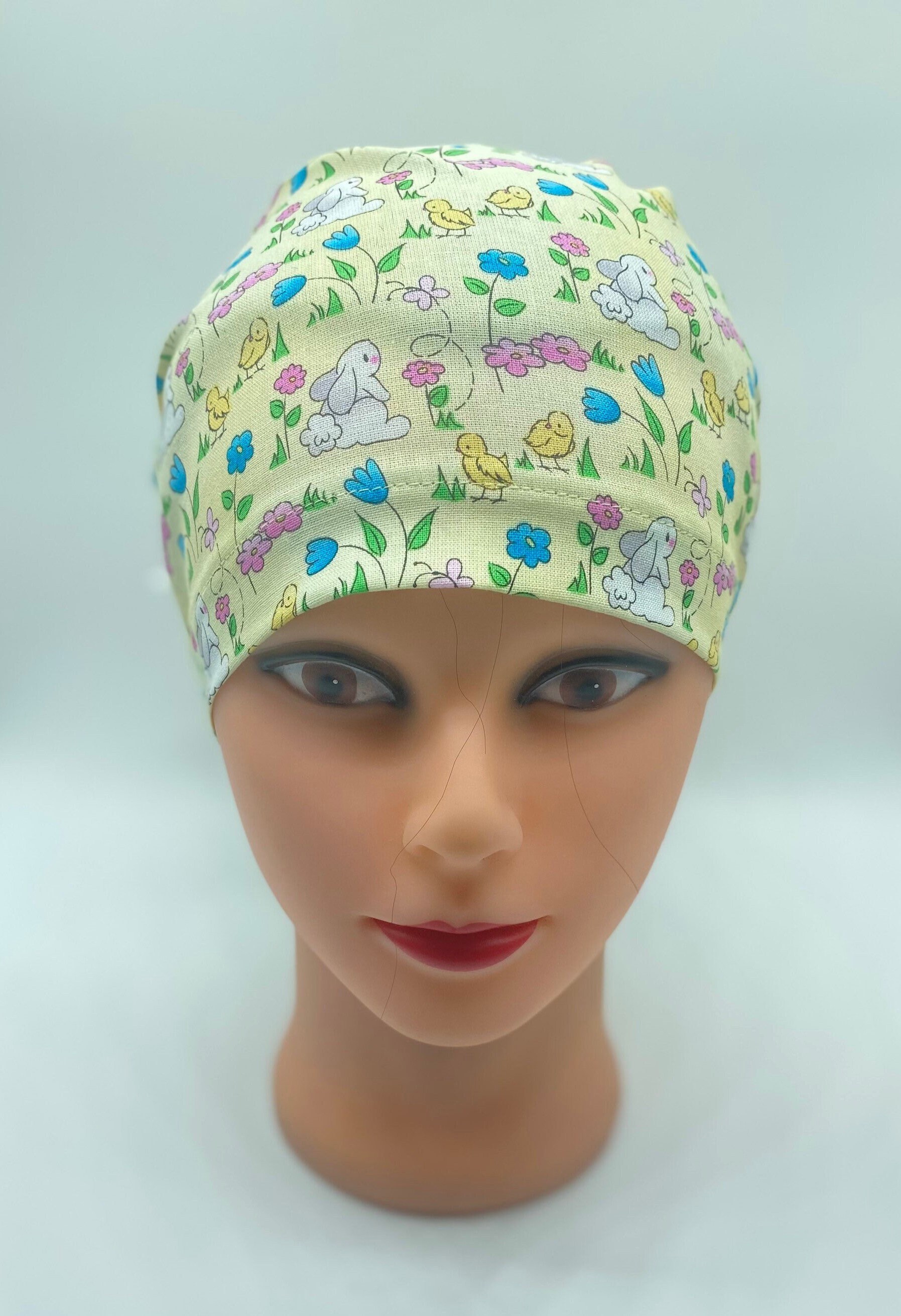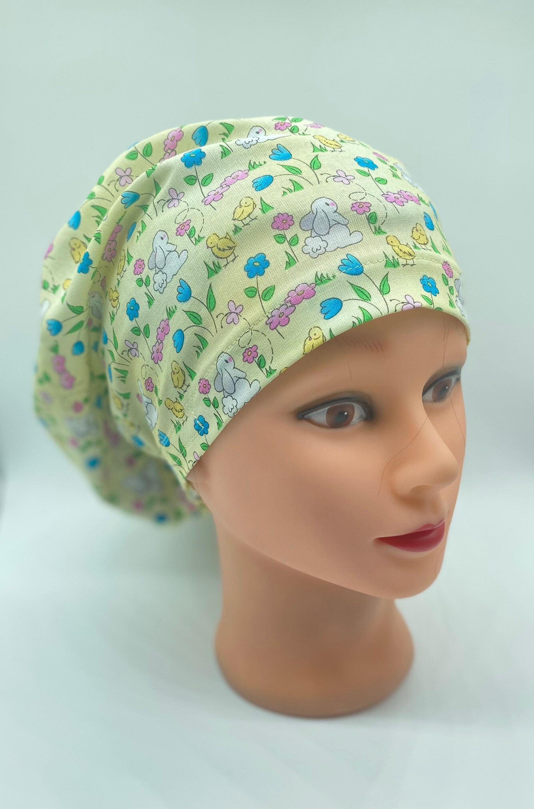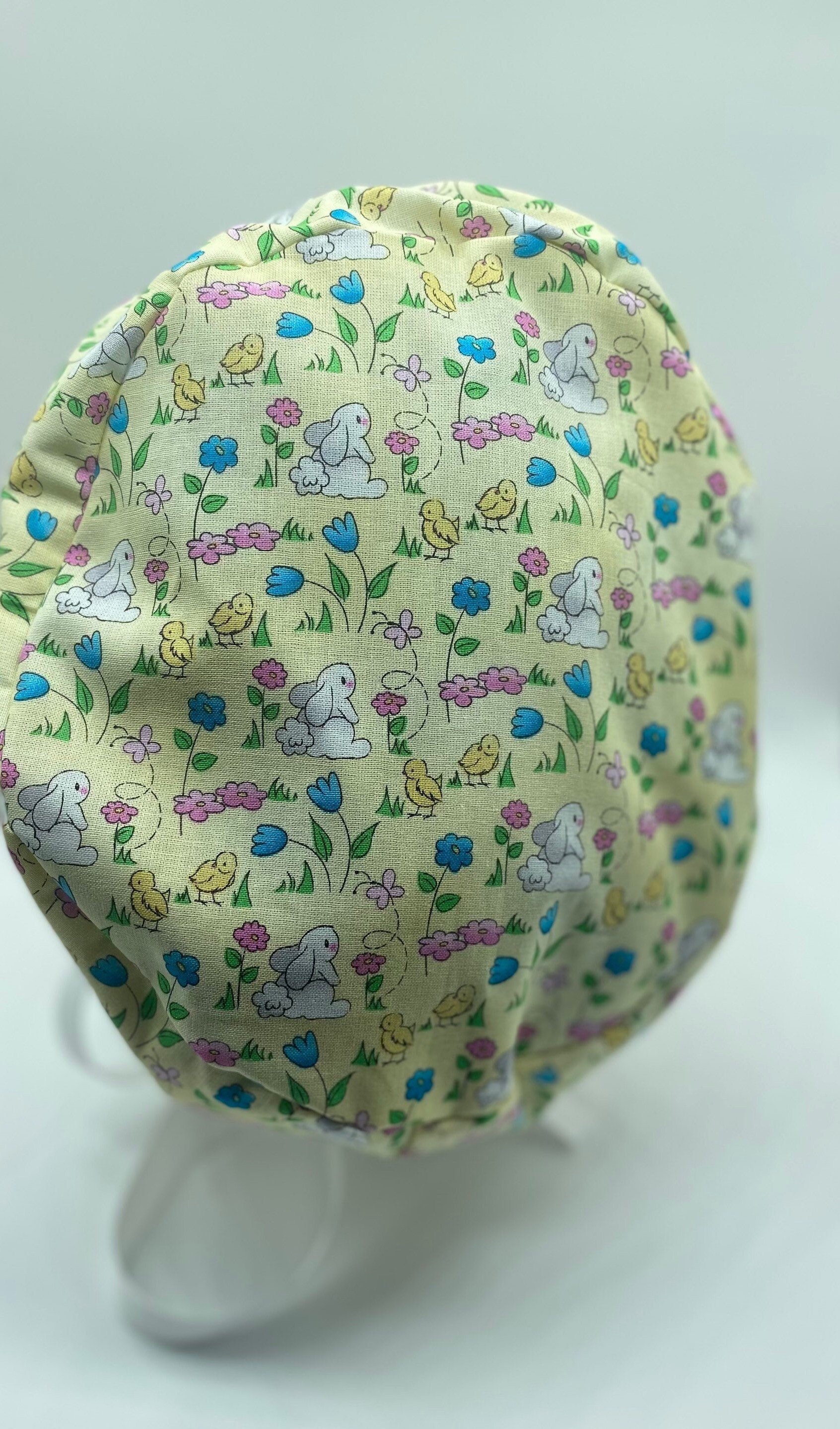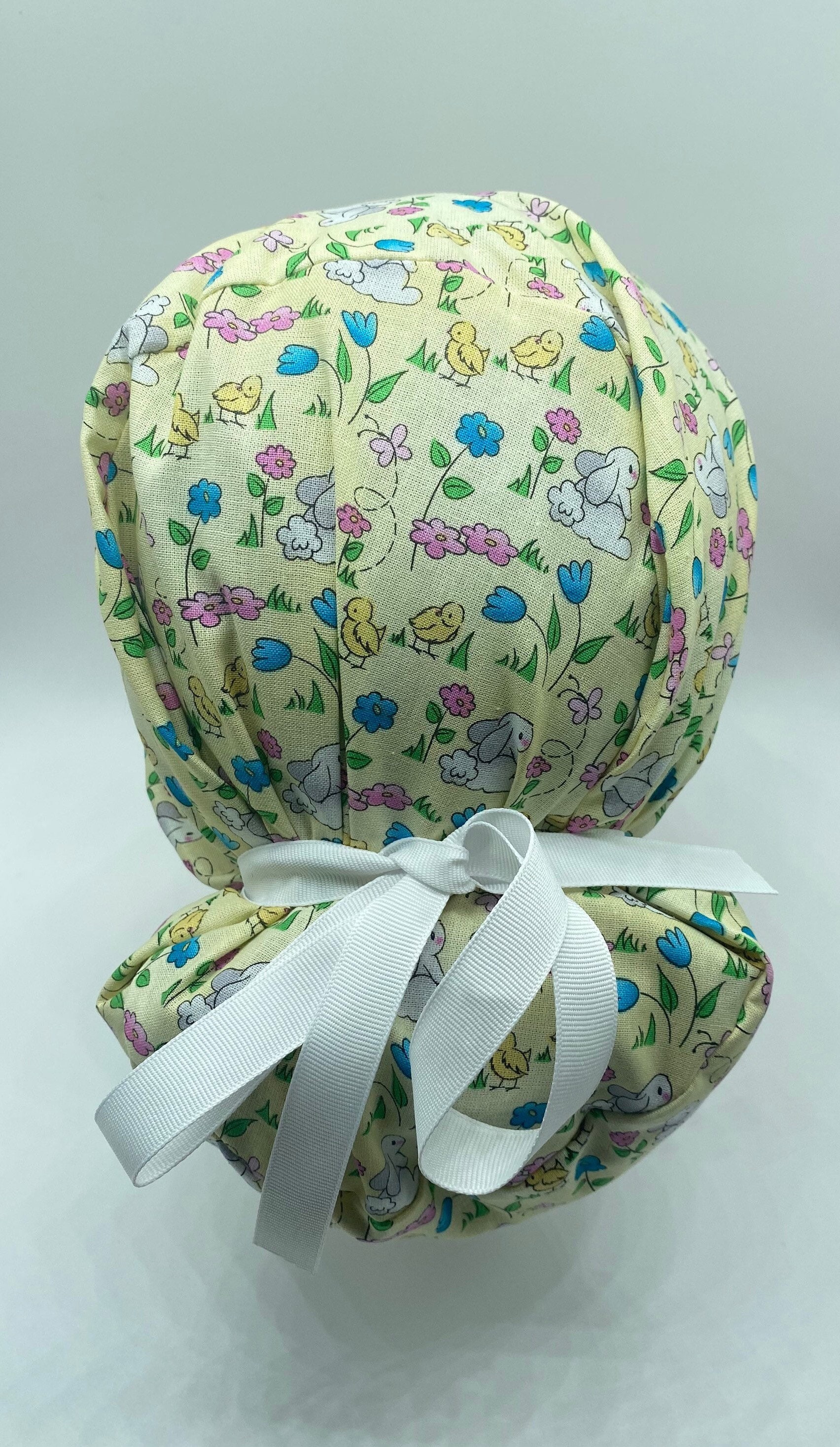 💜This is a full coverage Easter bunny bonnet / ponytail scrub caps with ribbon ties, available with or without buttons. Comes with an elastic back for a comfortable fit every.